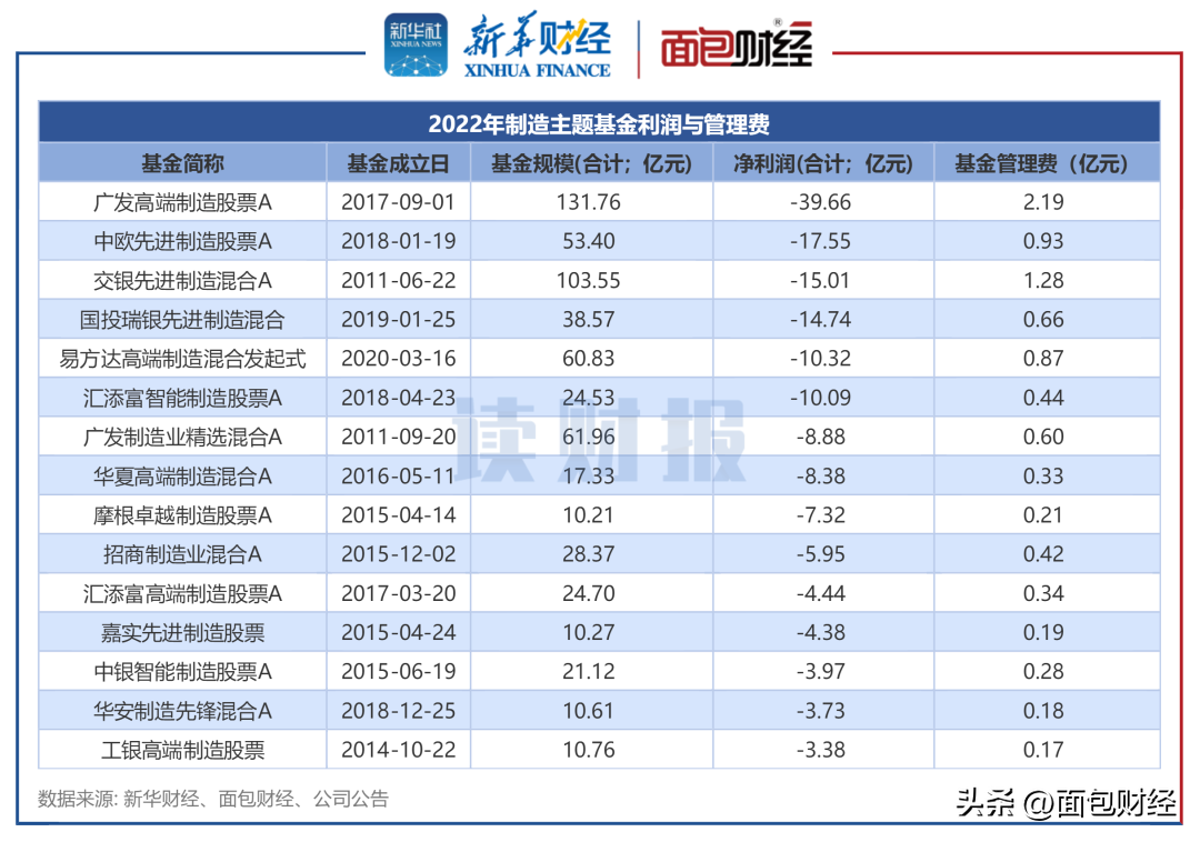 2022年,广发高端制造股票年亏39.66亿元,贡献管理费2.19亿元,两项数据均居于“制造主题基金亏损榜”榜首。