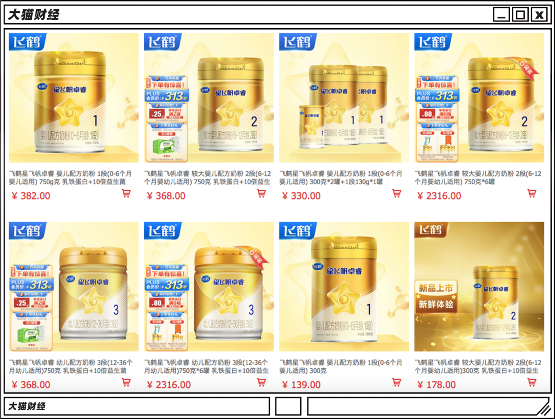 具体价格,冷友斌倒是没说,但是从其官方旗舰店的售价来看,其“星飞帆”一段奶粉折合463元/kg,而另一“星飞帆卓睿”一段奶粉,折合509元/kg。