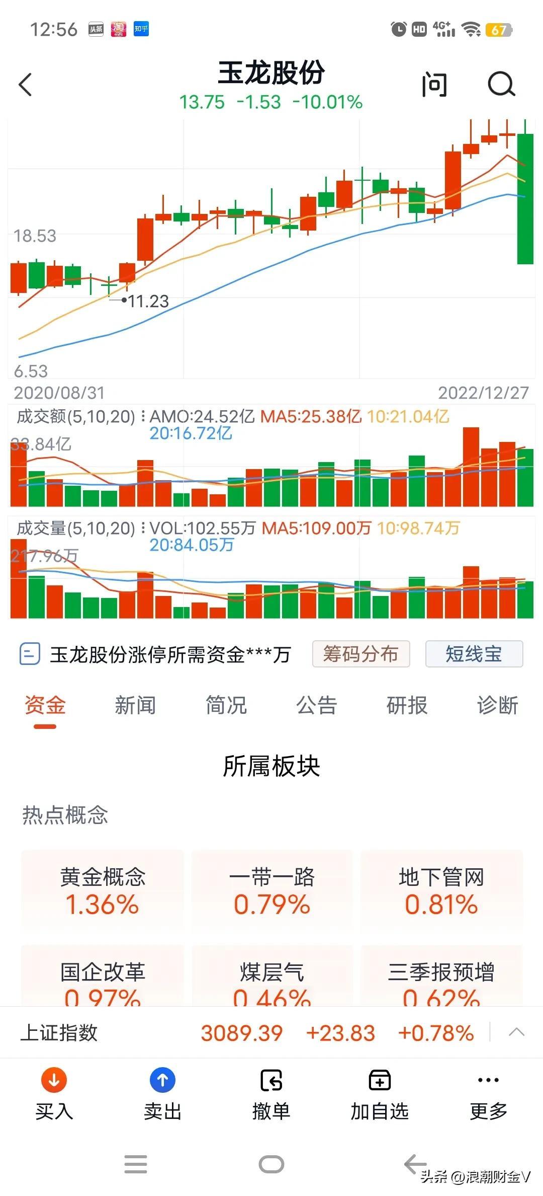 从技术上看,玉龙股份从2020年一月开始,在相对的低位股票价格在4.50元左右,持续性的徘徊,逐步走出了多头技术形态,然后他的股票价格出现了持续性的上涨,连续性的上涨,它上涨的幅度相对的比较大。
