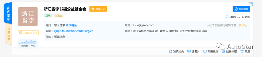 于是,作为一名新闻从业者,AutoStar本着求真求实的新闻原则,对“李书福公益基金会”展开了“调查”,而结果令人愕然。
