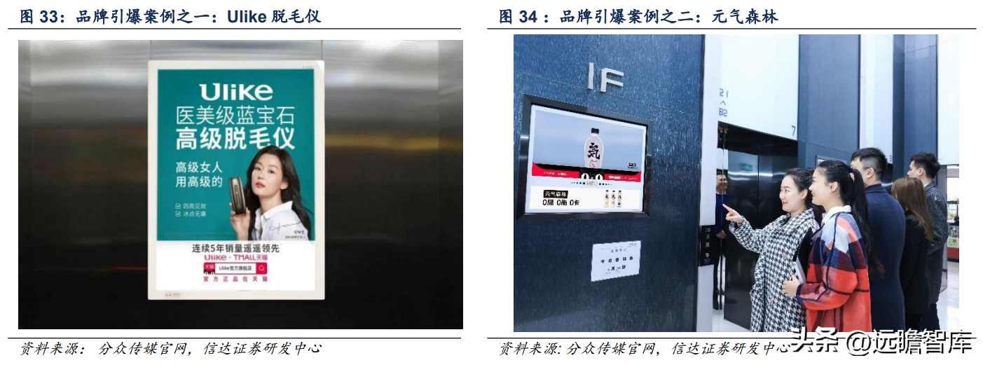 分众董事长江南春先生曾提到,“凯度做过一个很重要的营销投资回报率分析,实际上一个企业 70%的销售是由它的品牌资产贡献的,30%是来自于短期的促销和流量转化”,阐述了品牌广告的重要性。而分众最独有的价值就是在主流城市主流人群必经的电梯空间中形成高频次有效到达,从而形成强大的品牌引爆能力,帮助各公司获得更高效的渗透品牌影响力。
