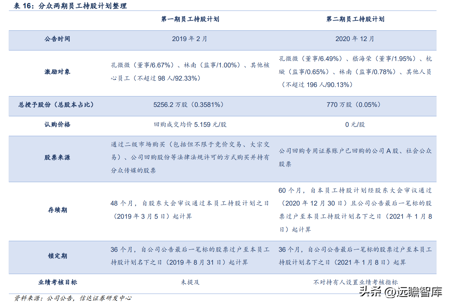 2019 年 2 月,公司公告了第一期员工持股计划,锁定期为 36 个月,自公司公告最后一笔 标的股票过户至本员工持股计划名下之日(2019 年 8 月 31 日)起计算,即 2022 年 8 月 31 日即将解禁。