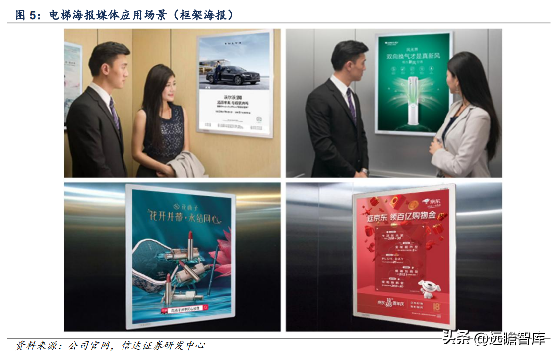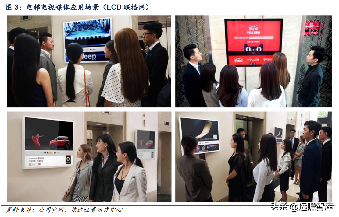 公司当前的主营业务为生活圈媒体的开发和运营,主要产品为楼宇媒体(包含电梯电视媒体和电梯海报媒体)、影院银幕广告媒体和终端卖场媒体等,覆盖城市主流消费人群的工作场景、生活场景、娱乐场景和消费场景,并相互整合成为生活圈媒体网络。目前,楼宇媒体是公司收入中最主要的来源,2021 年整体收入中占比超过 90%。