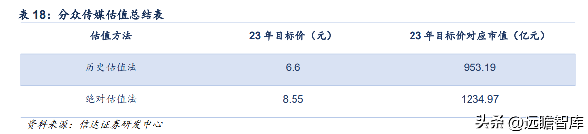 2018 年与竞争对手新潮传媒开启价格战,受其影响期间公司毛利率由 66.21%下滑到 45.20%,归母净利润 58.23 亿元下降到 18.75 亿 元,平均估值下降至 15~20XPE。