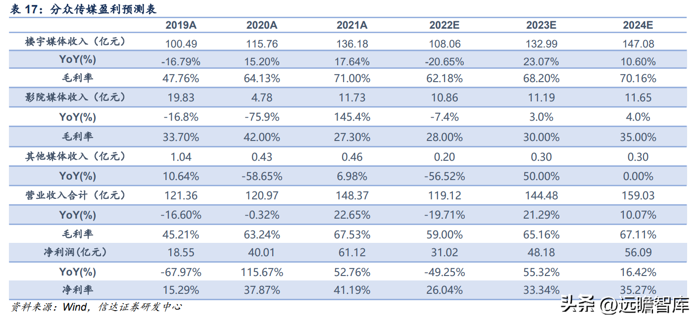 影院媒体由于受疫情影响较大,稳定性远低于楼宇媒体,但 22 年受益于汽车客户对该类产品的偏好,我们预计 22 年全年收入可与 21 年整体持平。