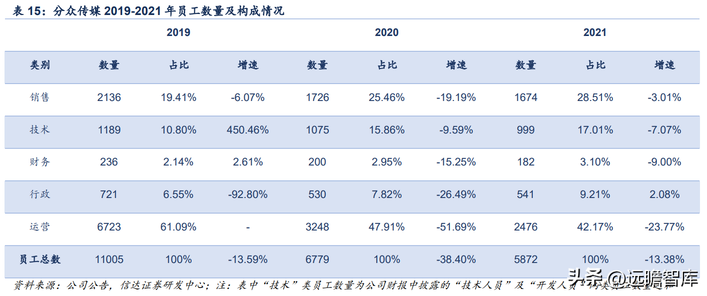 公司同时对人员进行了优化,通过系统升级和数字化改造,提升人效。近 3 年(2019~2021 年),公司的员工总数一直处于下降的趋势。