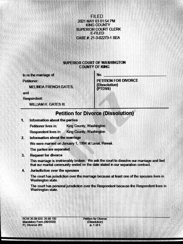 美国当地时间5月14日,比尔·盖茨离婚案首次听证会在美国西北部的华盛顿州举行,离婚判决日则要到2022年4月。