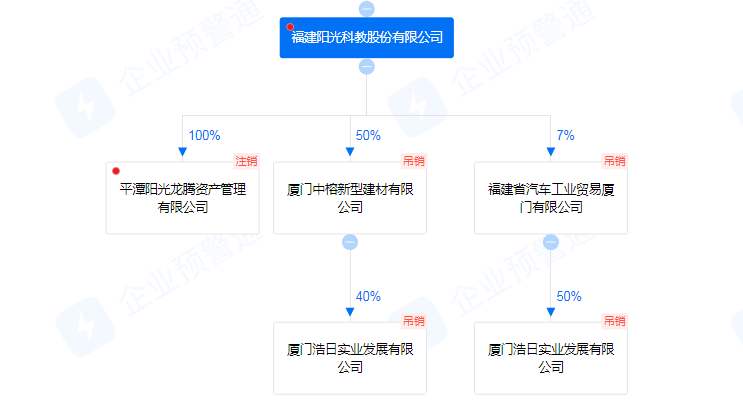 其中蹊跷的是,阳光科教直接或间接持有的5家公司均已注销或吊销,其主要经营范围包括教育管理、教育信息咨询以及对教育、科研、电子商务的投资等。