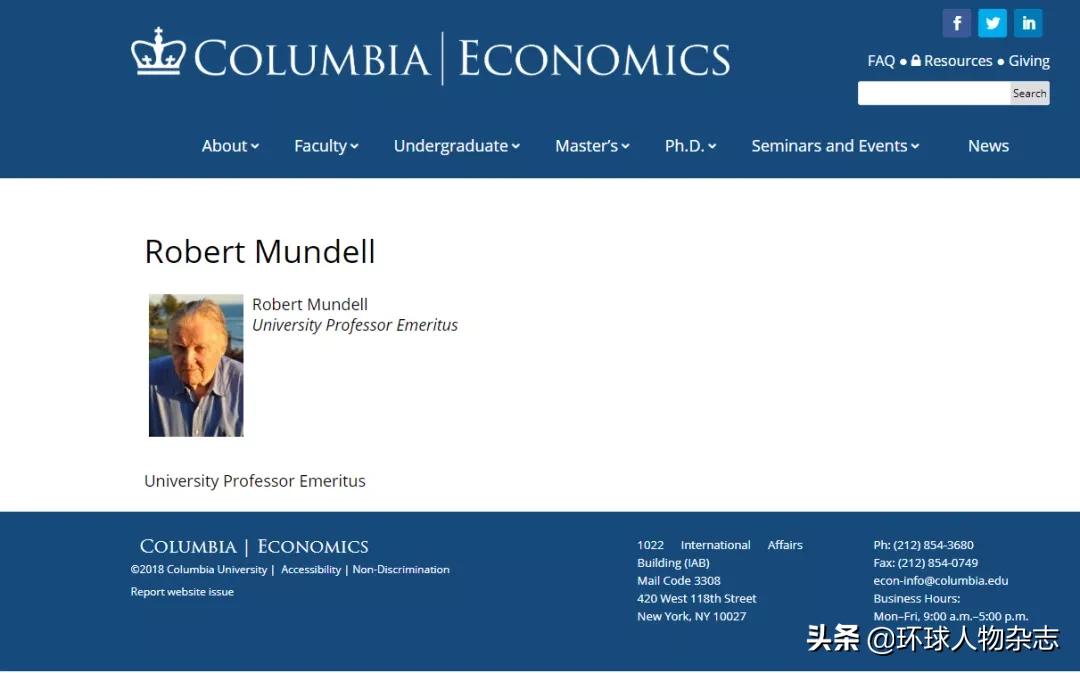 ·蒙代尔成为哥伦比亚大学 “荣誉教授”。