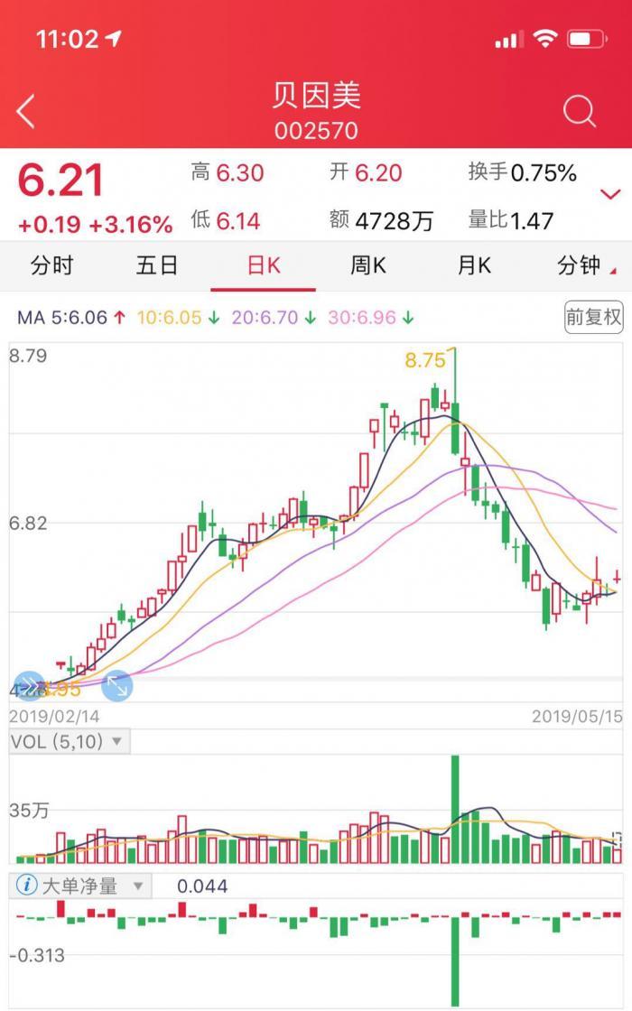 截至发稿,贝因美5月15日上涨3.16%,报6.21元/股。