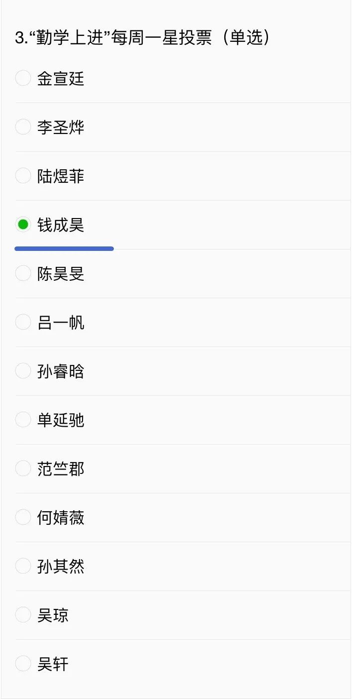 本次投票有三个类别选项,分别是“爱岗敬业”“创新创业”“勤学上进”好青年,小伙伴们在三个类别中分别选择1人(每个类别仅限1人),然后点击“投票”选项,即可选出你心中的最棒噢!