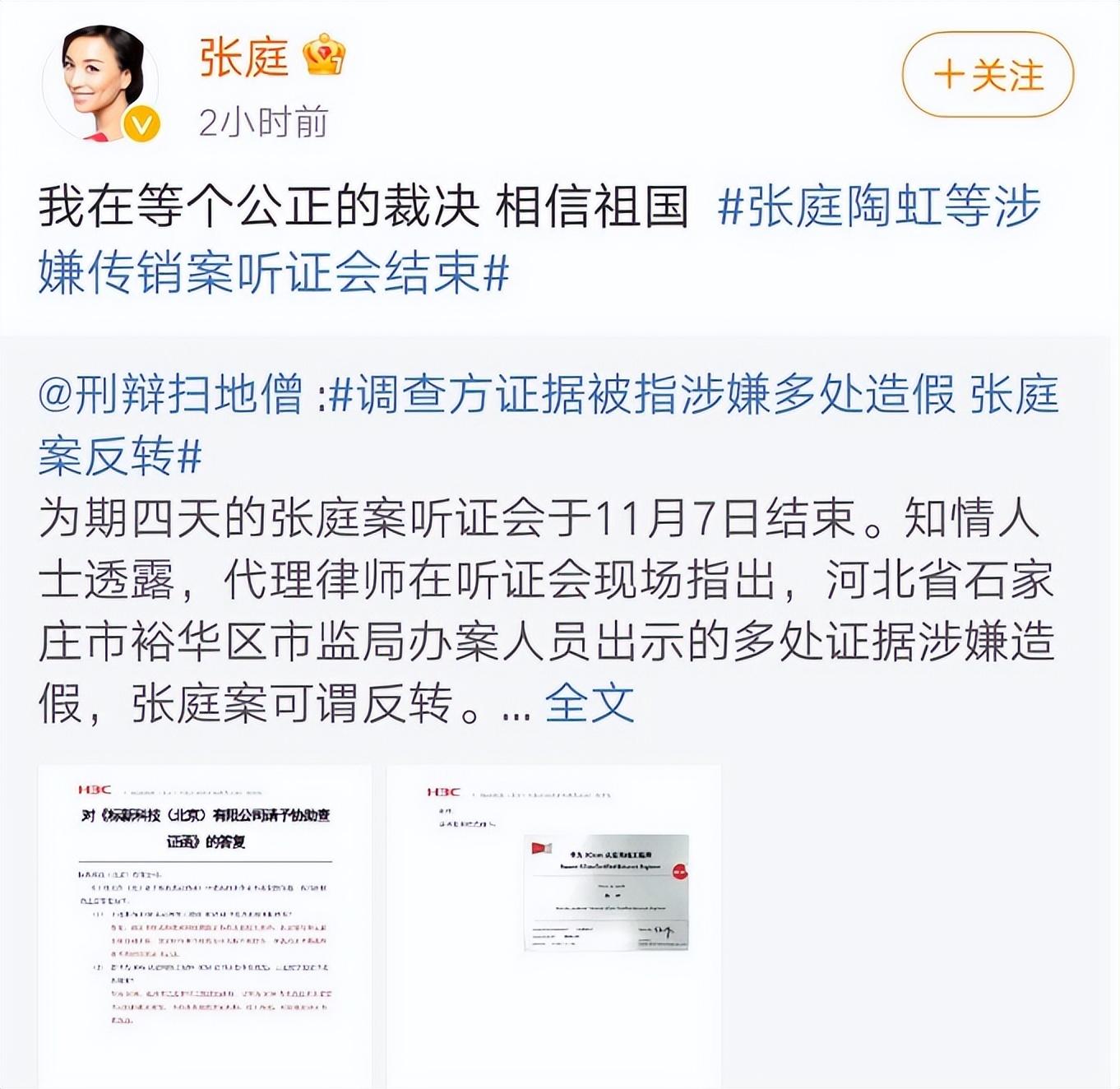不过,在已遭实锤之时,张庭也曾发文“等待公平的判决”试图混淆视听。