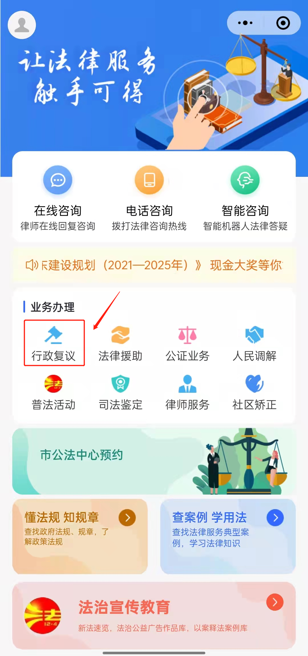 2. “珠海智慧司法”微信小程序,点击“行政复议”。