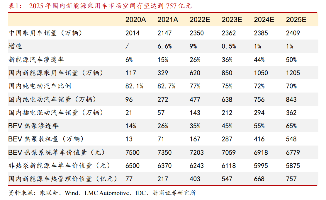 2025年,国内新能源乘用车热管理行业市场空间有望达757亿元。