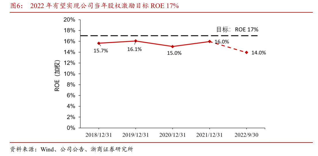 公司有望实现2022年股权激励目标ROE 17%。