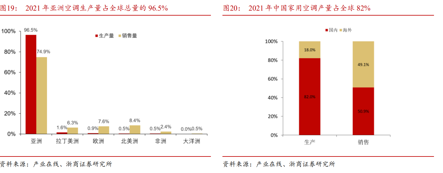 根据产业在线数据,2021年,亚洲集中了全球96.5%的家用空调制造资源。