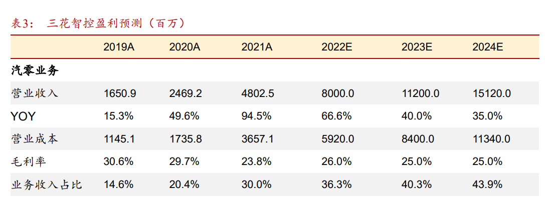 2021年公司汽零业务板块营收同比增长94%,随着新能源汽车的逐渐渗透,汽零板块业务营收有望继续实现高弹性增长。