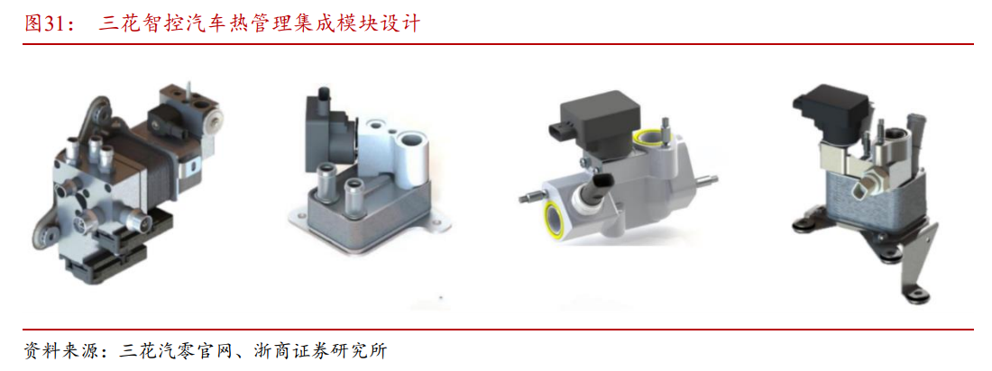 如三花便在国内新能源汽车发展浪潮中开发了各种集成模块,可根据客户的不同系统要求进行个性化开发,包括电池热管理系统、热泵空调系统、油冷系统等。其较为领先的集成技术可实现更好的系统性能和成本竞争力。