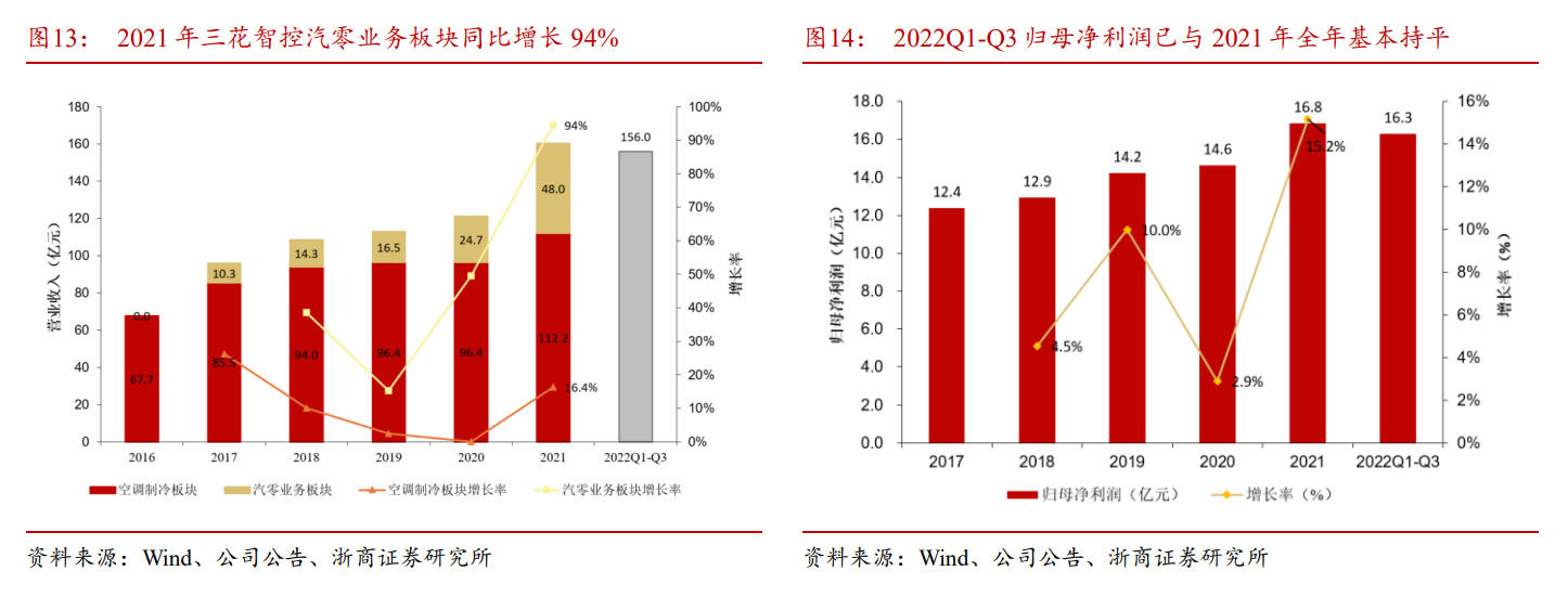 1.4 空调冰箱零部件业务稳健增长,汽零热管理业务发展迅猛