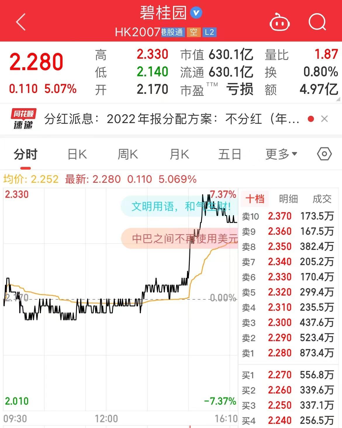 截至今日港股收盘,碧桂园股价上涨5.07%
