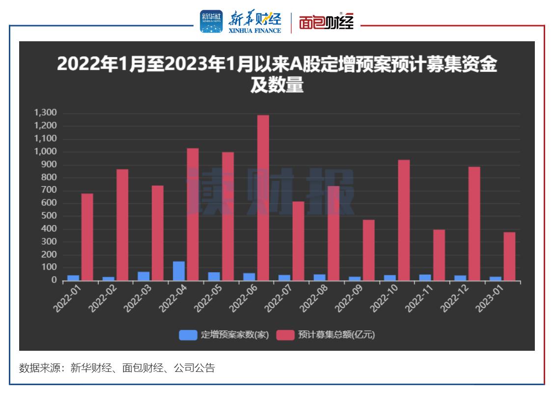 按照首日披露预案日口径统计,2023年1月A股上市公司定增预案发布数量共计30家,环比减少10家,预计募资规模环比下降57.51%。