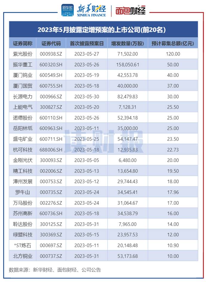 图5:2023年5月披露定增预案的上市公司(前20名)