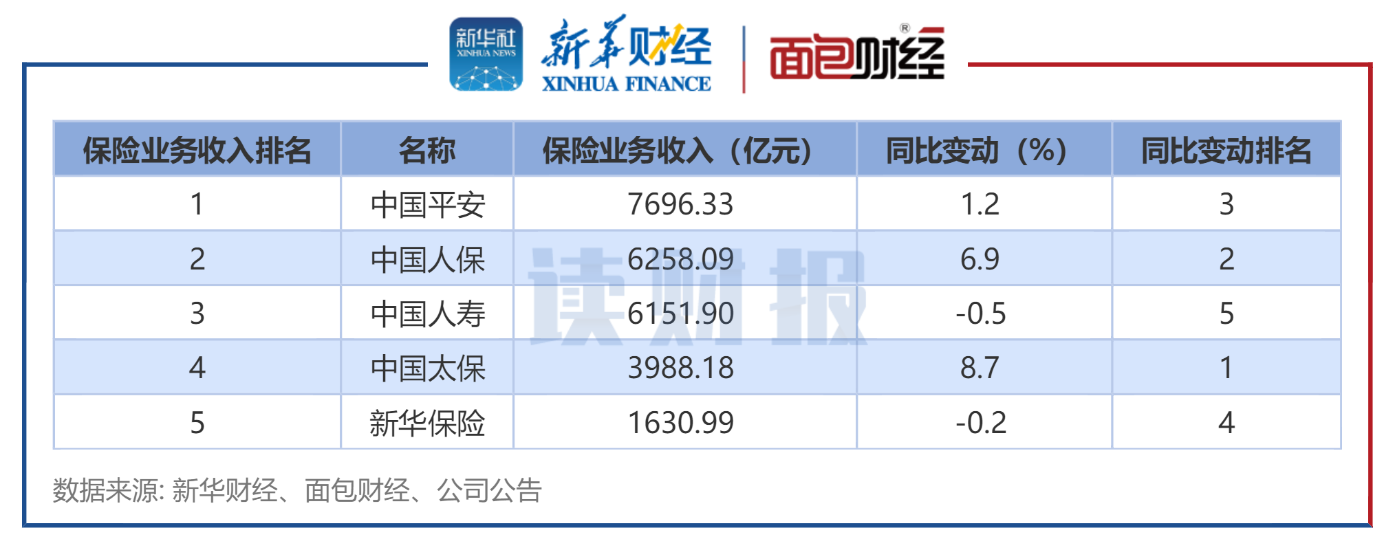 需注意的是,中国人寿和新华保险仅有寿险业务,其他3家上市险企除寿险业务外还包含财险业务。