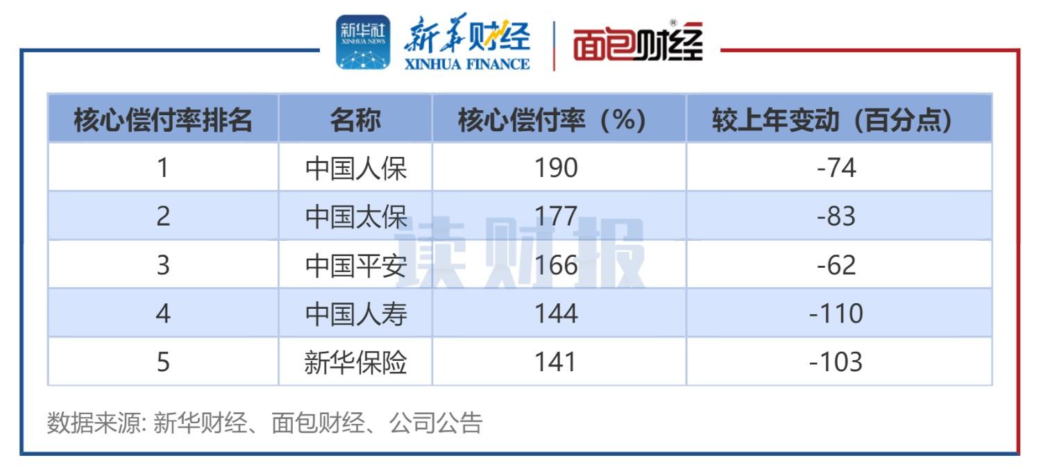 核心偿付率方面,截至2022年末,中国人保和中国太保的核心偿付率分别为190%和177%,排名前二;新华保险和中国人寿的核心偿付率相对较低,分别为141%和144%。