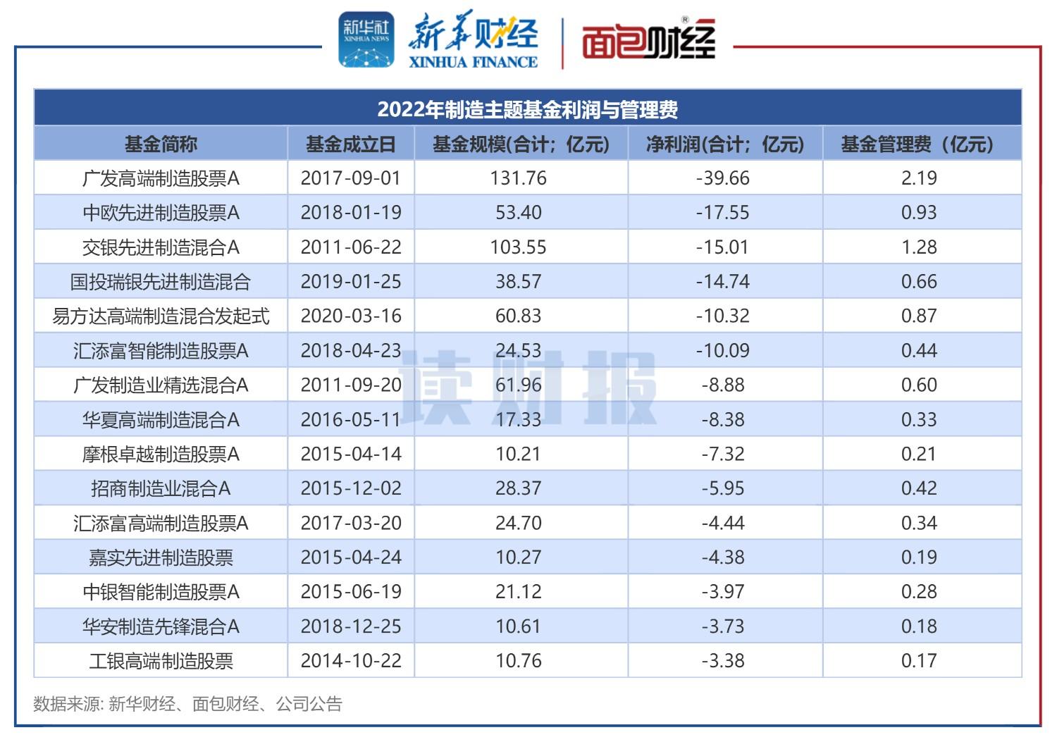 2022年,广发高端制造股票年亏39.66亿元,贡献管理费2.19亿元,两项数据均居于“制造主题基金亏损榜”榜首。