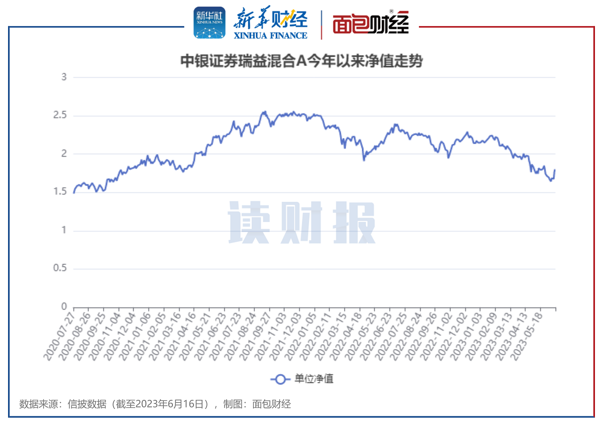 截至2023年6月16日,中银证券瑞益A的最新单位净值为1.8019元,运作约6.4年,累计浮盈80.19%,跑赢基准超65个百分点。该基金今年以来净值下跌16.9%,跑输基准逾18个百分点,同类排名2247/2266。