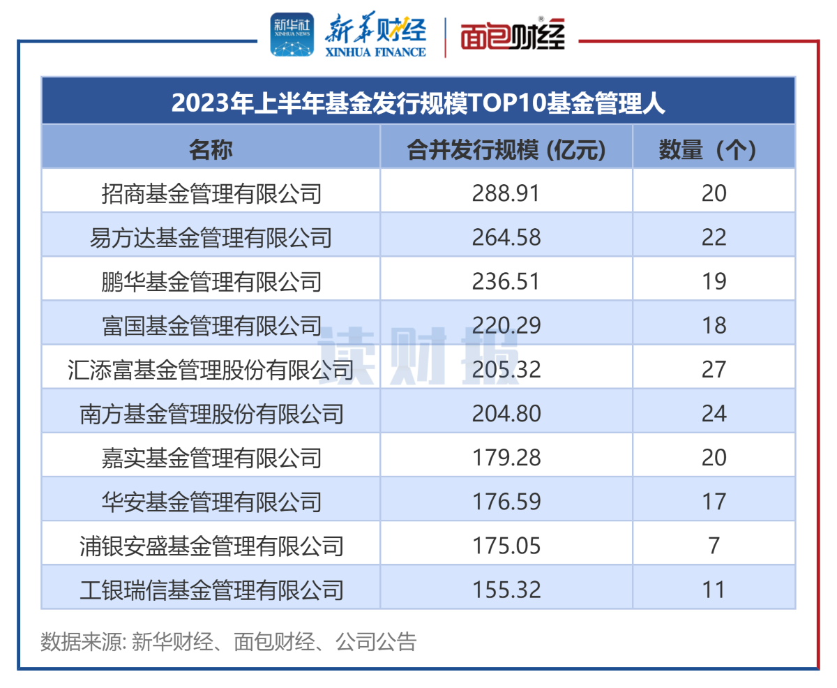 图4:2023年上半年基金发行规模TOP10基金管理人