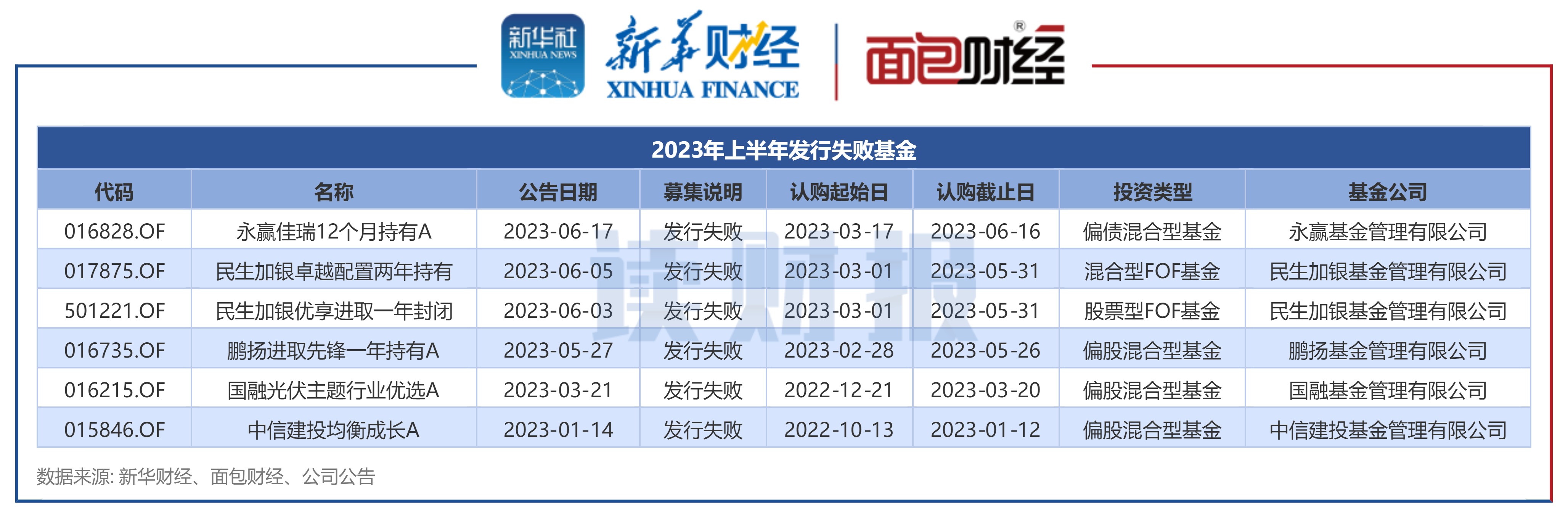 除延长募集期限之外,2023年上半年还有6只产品发行失败,包括2只FOF基金、4只混合型基金。