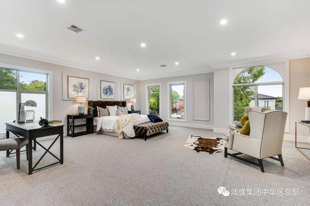 一层有客房配独立卫浴,两个起居区室,二层四间卧室,超大主卧配男女独立步入式衣帽间,每个卧室都配有独立卫浴和步入式衣柜,并额外有一个活动区。周边基础设施完善,环境优越,非常适合自住,近邻学校,购物中心和火车站,是墨尔本著名的富人区。