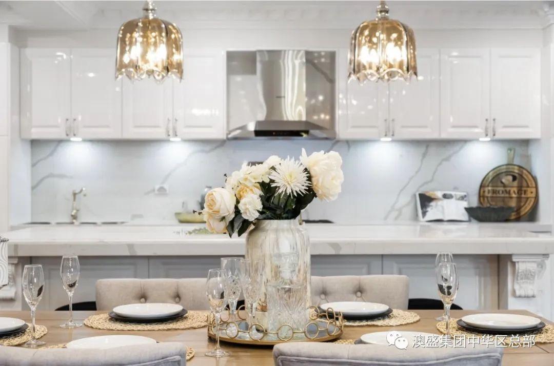 全屋梨花木实木,车开进去都不伤丝毫。800mm加厚厨房大理石岛台,中西双厨房,垂直叠式烤箱蒸箱,贵妇不弯腰。开放式厅房一体,玻璃展示柜做微隔断设计。