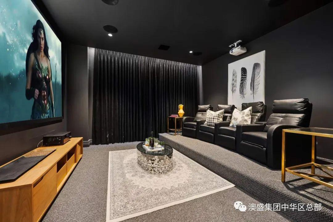 家庭影院安装140寸大投影屏,屋顶带氛围灯。