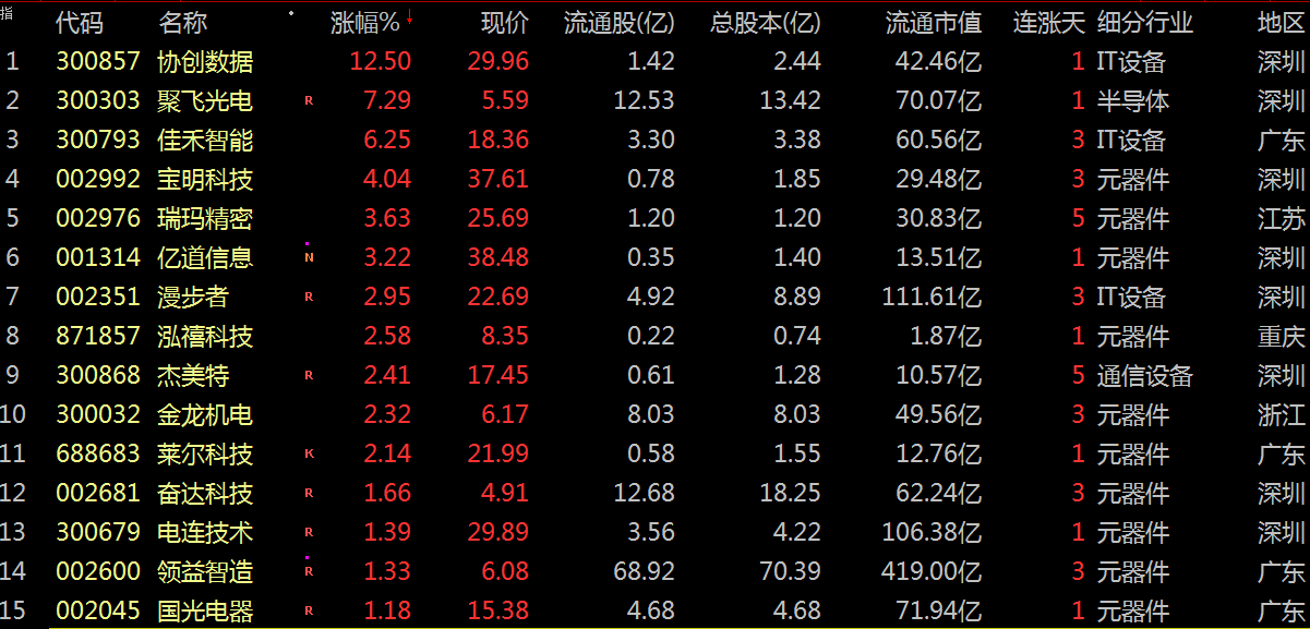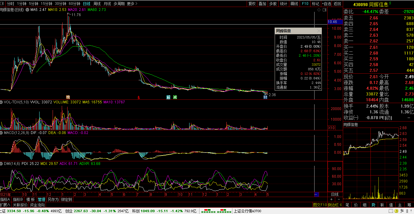 第一、430090同辉信息涨幅06.53% (0个涨停板;最高涨9.39%)