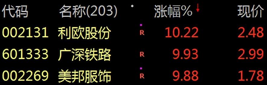 002269 美邦服饰涨幅10.49% 002052 ST同洲涨幅10.14% 002089 *ST新海涨幅10.11%