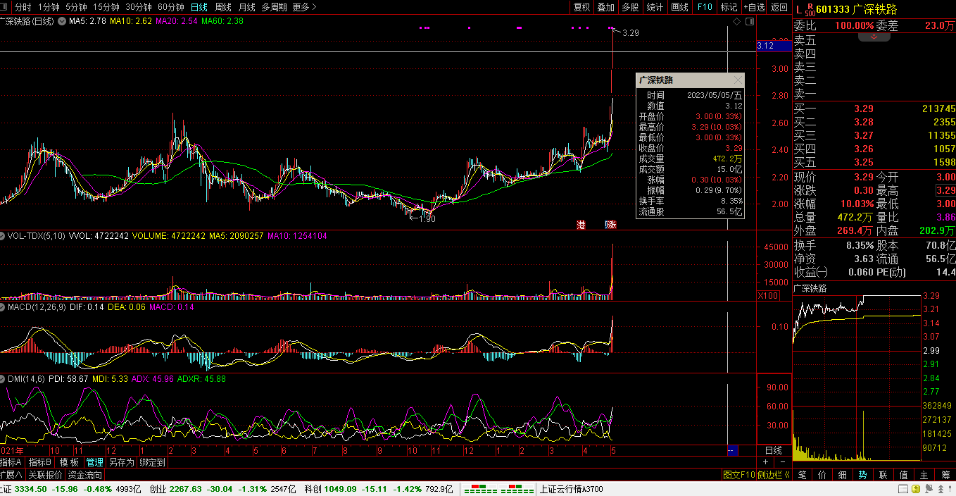 第一、601333 广深铁路涨幅20.96% (2个涨停板;最高涨20.96%)