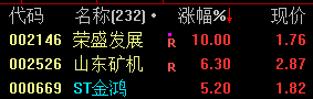 002146 荣盛发展 002526 山东矿机 000669 ST金鸿