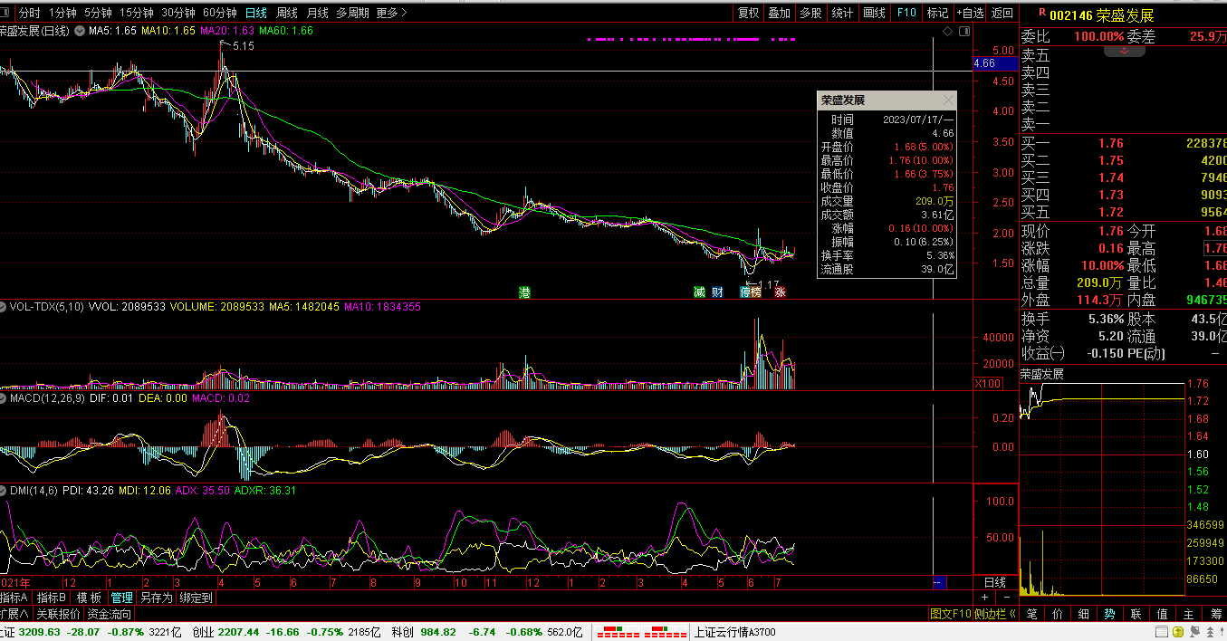 07月17日,早盘:低开盘跌,窄幅横盘。午盘:杀跌反弹,见顶回落。尾盘:筑底反弹,次高绿盘。看点之一:沪深