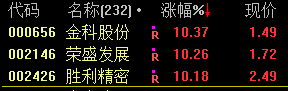 000656 金科股份 002146 荣盛发展 002426 胜利精密
