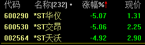 600290 *ST华仪 600530 *ST交昂 002564 *ST天沃