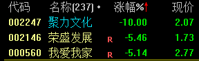 002247 聚力文化 002146 荣盛发展 000560 我爱我家