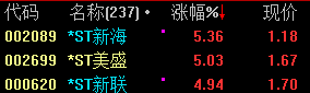 002089 *ST新海 002699 *ST美盛 000620 *ST新联