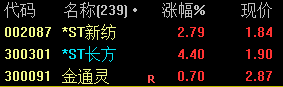 002087 *ST新纺 300301 *ST长方 300091 金通灵