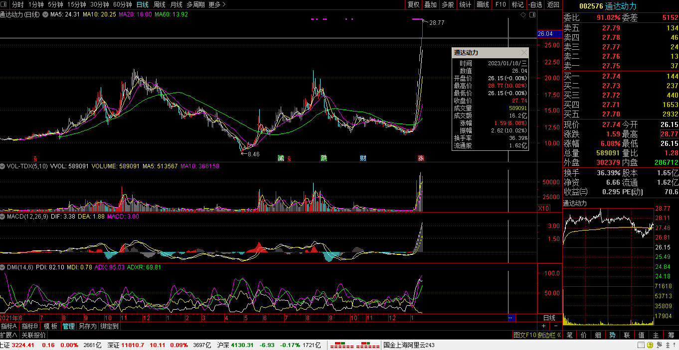 1、沪深冠军:002576 通达动力