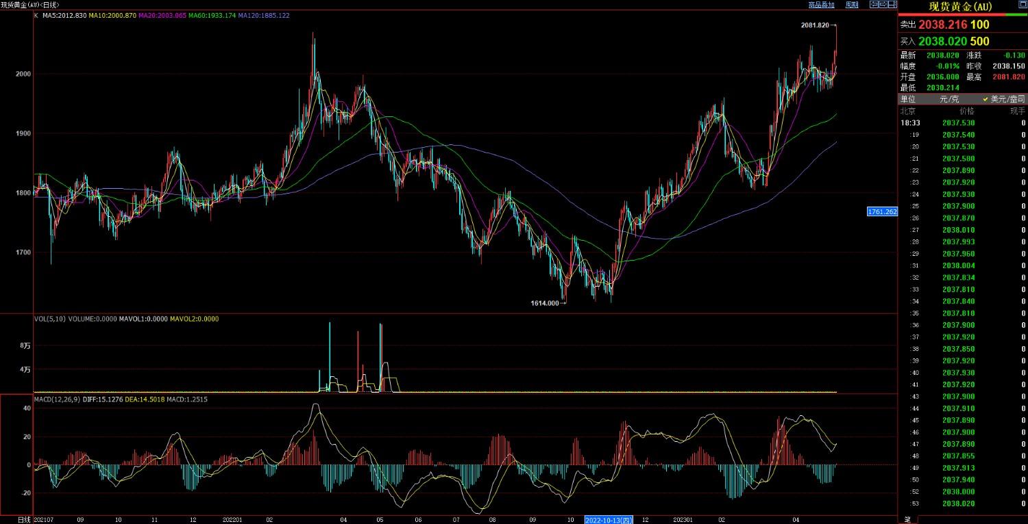 与此同时,今年以来,国际金价走势一路震荡上行,COMEX黄金期货价格3月底突破2000美元/盎司,4月中旬一度触及2063.4美元/盎司。