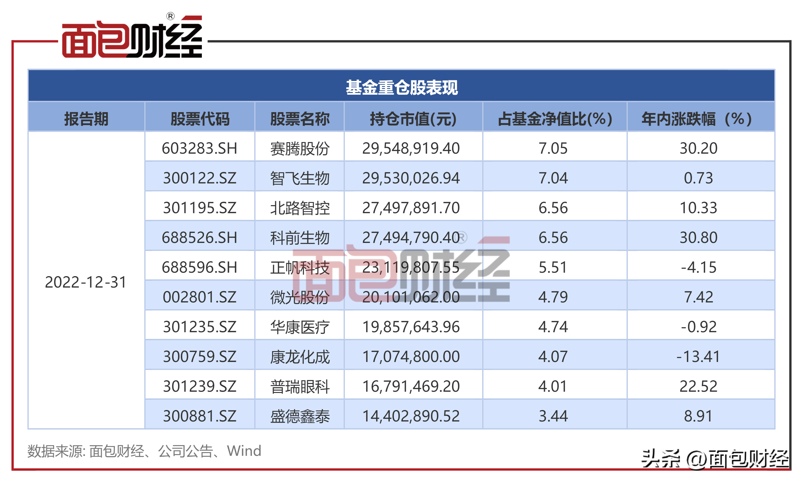 前三大重仓股:赛腾股份、智飞生物、北路智控