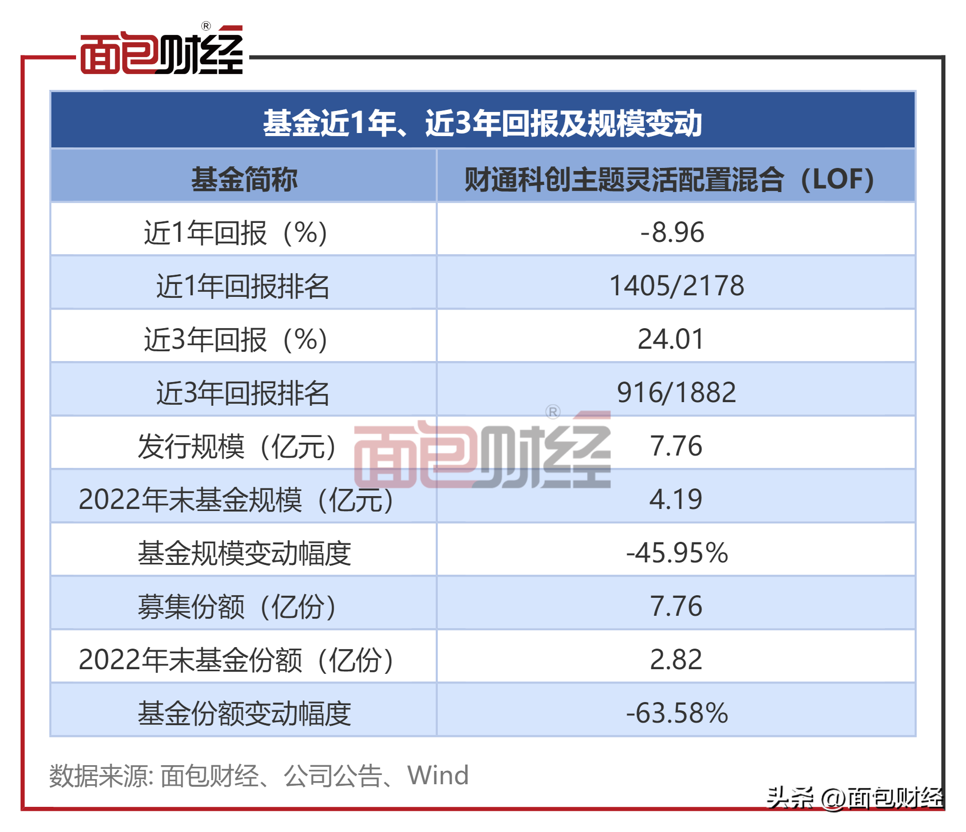 财通科创主题灵活配置混合的发行规模约7.76亿元(对应募集份额约7.76亿份)。2022年四季度末,该基金的基金资产净值约为4.19亿元、基金份额总额约为2.82亿份,分别下降约45.95%、63.58%。