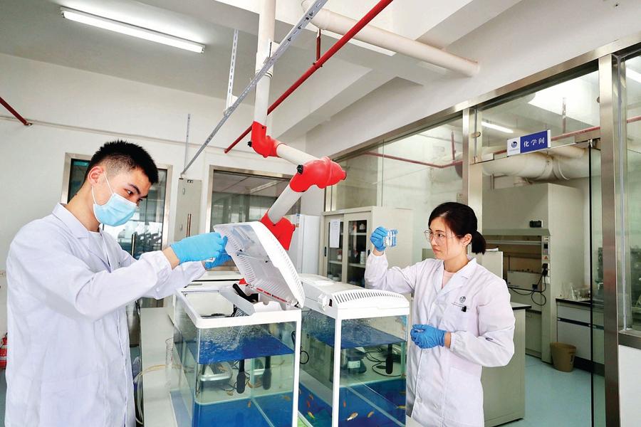 大亚湾石化区吸引众多石化中下游企业落户。这是惠州清水湾生物材料有限公司分析室。